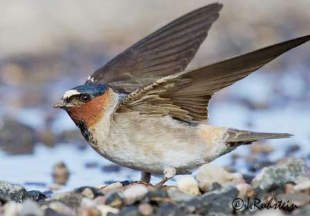 Petrochelidon pyrrhonota Cliff Swallow Fahlstirnschwalbe As its name implies, this swallow orginally nested on cliffs, but man-made structures are now the principal locations for breeding. Malheur County, Oregon, USA |