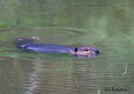 Castor canadensis Beaver Biber A beaver's tail is flat (about 30 cm. long) and covered with scales . The beaver uses the tail to steer when swimming or for balance when sitting. Mount Robson Ranch, BC. Canada |