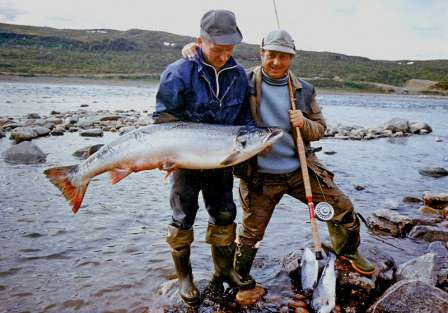 Flyfishing for Atlantic salmon at Laerdal, Tana, and Namsen rivers in Norway, in the 1970's and 1980's