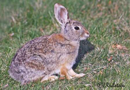 Sylvilagus nuttallii Mountain Cottontail Bergbaumwollschwanzkaninchen This rabbit is found in rocky or brushy areas of sagebrush in the mountains. It can be identified by the prominent black line around the ear margins. Malheur County,Oregon, USA |