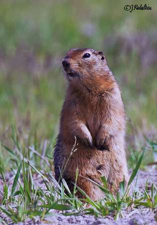 Spermophilus parryii Arctic Ground Squirrel Arktischer Ziesel This Arctic Ground Squirrel stands watch by its burrow. If it senses danger, it whistles an alarm and then dives to safety into its burrow. Blackstone Uplands, Dempster Highway, Yukon, Canada |