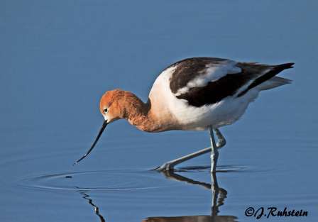 Recurvirostra americana American Avocet Braunhals-Säbelschnäbler As a long-legged shorebird, the American Avocet is characterized by a long, thin bill that curves upward. The bird has bluish-grey legs and feet; thus its colloquial name, "blue shanks". Malheur County, Oregon, USA |