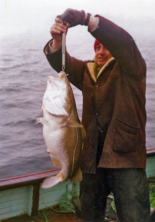 Fishing for Atlantic cod along the coastline of Denmark, winter 1971