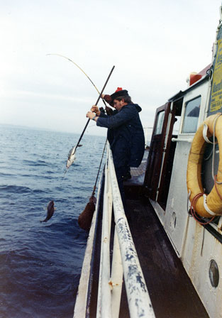 Fishing for Atlantic cod along the coastline of Denmark, winter 1971