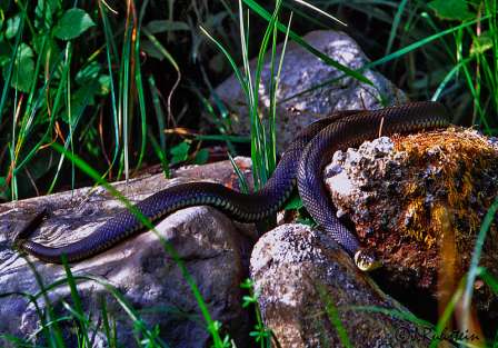 Natrix natrix Ringed Snake Ringelnatter The Ringed snake is an excellent swimmer that searches the water for prey. It sneaks up to and feeds on small fish and frogs, among others. Utting/Ammersee, Germany |