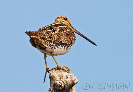 Gallinago delicata Wilson's Snipe Amerikanische Bekassine This shorebird is also commonly known to many rural people as the "meadow hen". As a year-round resident and world citizen it is found from Alaska to Newfoundland, where it can be seen in soggy meadows, bushy swamps or tidal areas. Malheur County, Oregon, USA |