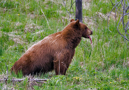 Ursus americanus Black Bear Schwarzbär Black bears have a long sticky tongue for probing into holes for ant pupae, as do other animals that eat a lot of ants. Lamar Valley, Yellowstone NP. USA. |