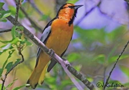 Icterus bullockii Bullock's Oriole Bullock Trupial Orioles obtain their food by gleaning treetop vegetation for insect larvae, beetles, wasps and other intervertebrates and snails. They take nectar if it is available and fruit. Male, Buttertubs, Nanaimo, Vancouver Island, BC. Canada |