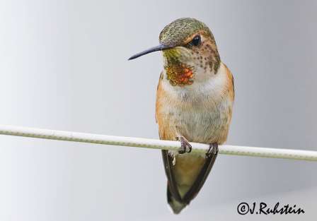 Selaphorus rufus Rufous Hummingbird Kolibri Females are larger than males. Their average weight is 3.41g, whereas males weigh about 3.22g. Female, Comox Valley, Vancouver Island, BC. Canada |